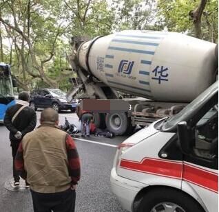 昨日上午12點,在南山路錢王祠路口發(fā)生一起車禍,一輛電瓶車被混凝土攪拌車撞倒。