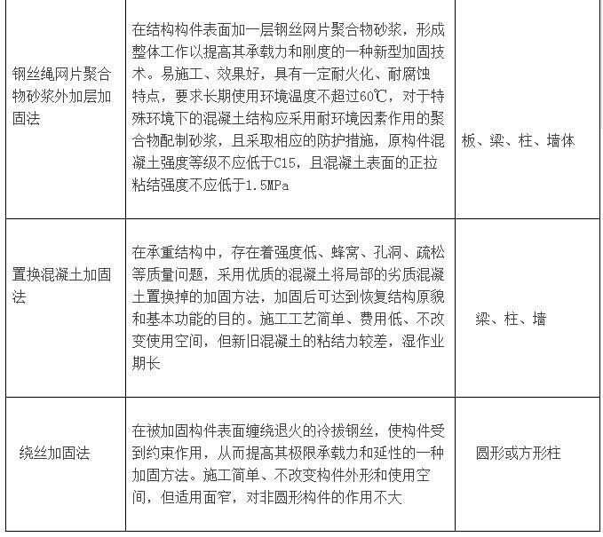 根據(jù)加固工程的特點,加固設(shè)計除要求做到技術(shù)安全可靠、經(jīng)濟合理、施工簡便、確保質(zhì)量、環(huán)保節(jié)能并滿足使用要求。以上是小編為大家總結(jié)的混凝土結(jié)構(gòu)常用加固方法概況: