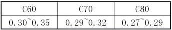 對于高強(qiáng)混凝土(C60以上)砂率控制在33%~36%。