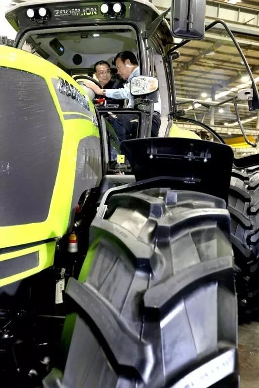 李克強總理登上“一人高的輪子、深耕可達半米”的中聯(lián)重科大馬力拖拉機