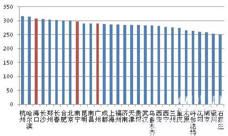 圖1:2016年全國各地C30商混市場均價(jià)比較(元/方)