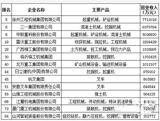 日前,中國(guó)機(jī)械工業(yè)百?gòu)?qiáng)企業(yè)名單出爐,工程機(jī)械行業(yè)有14家企業(yè)入圍,數(shù)量?jī)H次于電工電器行業(yè)排第二,說明工程機(jī)械作為機(jī)械行業(yè)的支柱地位不可撼動(dòng)。