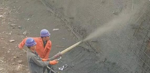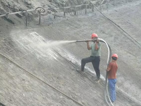 潮噴:是將骨料預(yù)加少量水,使之呈潮濕狀,再加水泥拌和,從而降低上料、拌和和噴射時(shí)的粉塵。但大量的水仍是在噴頭處加入和噴出的,其噴射工藝流程和使用機(jī)械同干噴工藝。目前施工現(xiàn)場(chǎng)較多使用的是潮噴工藝。