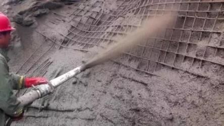 噴射混凝土是利用壓縮空氣,用壓力噴槍噴涂灌筑細(xì)石混凝土的施工法,將按一定配比的混凝土拌和料通過(guò)管道輸送并高速噴射到受?chē)娒嫔夏Y(jié)硬化,從而形成混凝土支護(hù)層。