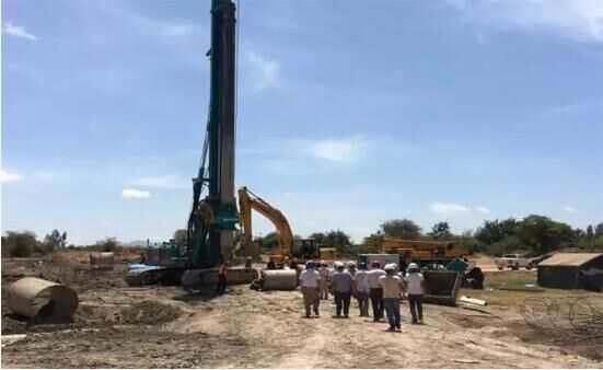 目前山河智能的兩臺(tái)旋挖鉆機(jī)和挖機(jī)正在Suswa地區(qū)跨B3公路特大橋項(xiàng)目施工,整機(jī)使用性能優(yōu)越,鉆孔效率高,特別是面對(duì)施工工況不太平整的路面時(shí)仍能保證絕對(duì)的穩(wěn)定性。