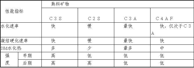 硅酸鹽水泥熟料的礦物組成,是影響水泥凝結(jié)硬化的主要因素,四種熟料礦物的水化、凝結(jié)硬化特性見表2—1所示。