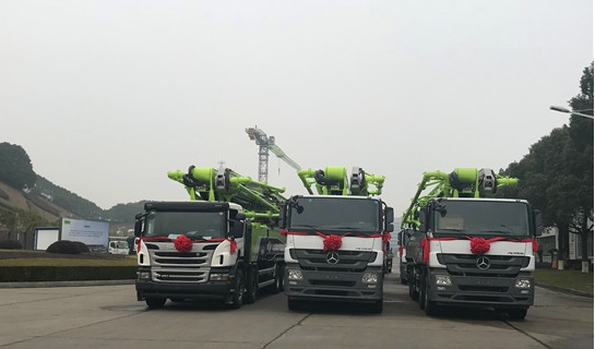 中聯重科4.0混凝土泵車在長沙麓谷工業(yè)園整裝待發(fā)