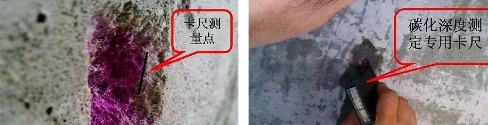 碳化會增大混凝土表面硬度,所以回彈判定其強度時需要檢測碳化深度(一般混凝土碳化深度可用碳化深度測量儀,碳化深度尺等進(jìn)行測定。回彈值測量完畢后,應(yīng)選擇不少于構(gòu)件的30%測區(qū)數(shù)在有代表性的位置上測量碳化深度值。)進(jìn)行修正。