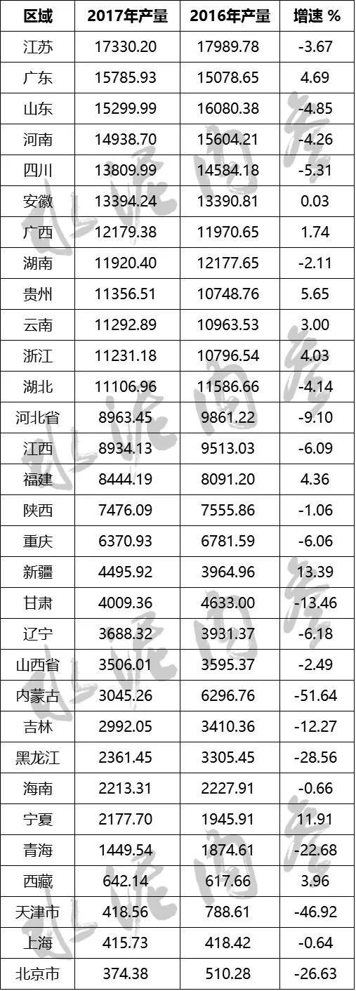 【行業(yè)動(dòng)態(tài)】2017年全國(guó)各省市水泥產(chǎn)量排行榜!