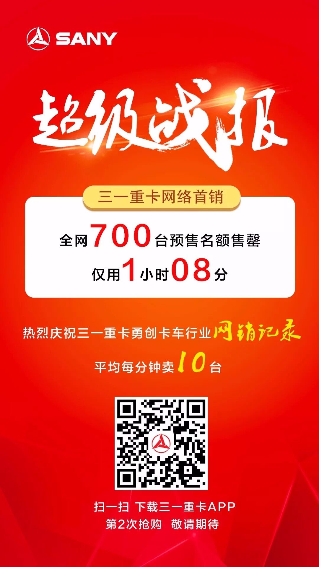 導(dǎo)語:2018年3月31日,三一重卡首批700臺預(yù)售名額在網(wǎng)絡(luò)上鳴鑼開賣,僅用1小時(shí)8分鐘,700臺預(yù)售名額搶購一空,不僅開創(chuàng)了重卡廠家網(wǎng)絡(luò)直銷的先河,更是創(chuàng)造了重卡互聯(lián)網(wǎng)銷售臺數(shù)和總金額的雙重紀(jì)錄!