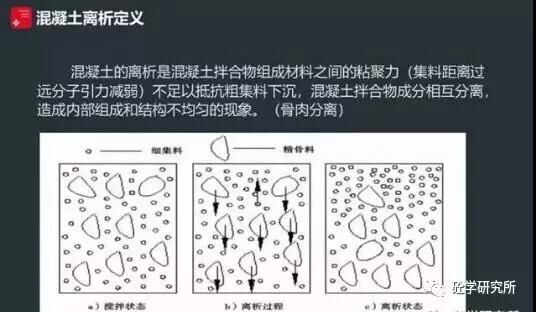 混凝土離析啊是混凝土是混凝土拌合物組成材料之間的一個(gè)黏聚力,(集料距離過遠(yuǎn)分子引力減弱)不足以抵抗粗集料下沉,混凝土拌合物成分互相分離,造成內(nèi)部組成結(jié)構(gòu)不均勻的現(xiàn)象。