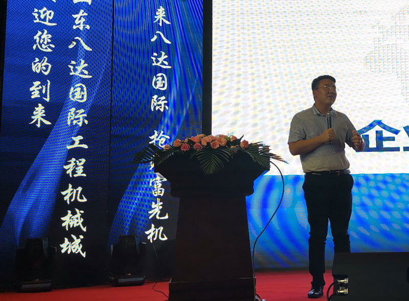 山東八達(dá)國(guó)際工程機(jī)械有限公司總經(jīng)理——于瑞杰致辭。于瑞杰總經(jīng)理表示山東八達(dá)國(guó)際工程機(jī)械始終秉承“工程建設(shè)生生不息,工程機(jī)械大有可為”的堅(jiān)定信念。全力打造國(guó)內(nèi)成交量最大的工程機(jī)械城。并通過(guò)資源、信息和客戶集中,實(shí)現(xiàn)貨比三家。讓客戶享受一站式服務(wù)得到全方位保障。我們希望通過(guò)此次大會(huì),把更多的工程機(jī)械和配件結(jié)合起來(lái),把更多的買家請(qǐng)進(jìn)來(lái),通過(guò)公平、公正、公開(kāi)的交易,讓成交更快捷、更容易、更方便!