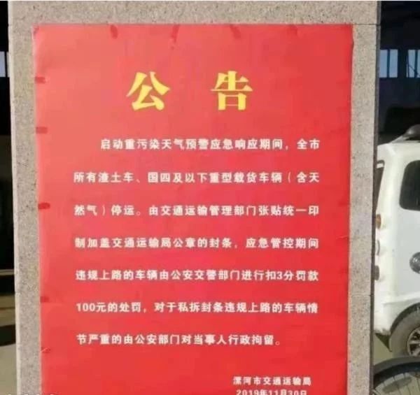 河南漯河、周口、洛陽等不少城市目前《重污染天氣應急預案》錯峰生產、限制生產甚至暫停生產,同時禁止工業(yè)企業(yè)、物流(除民生保障類)使用國四及國四以下的重型載貨汽車(含燃氣)進行運輸。 漯河市交通局收到督辦令,對全市1.3萬輛重型載貨汽車進行清查,對在漯車輛實施封存;同時對運輸企業(yè)停放的外地籍國四及以下重型載貨汽車(含燃氣)實施封存,所有車輛于12月9日24時全部封存完畢。 濟南《2019-2020年度重點行業(yè)秋冬季差異化錯峰生產工作方案》:橙色及以上預警期間禁止使用國四及以下重型載貨車輛(含燃氣)進行物料運輸,可不再對生產線采取減排措施。 朔州市《2019-2020年秋冬季工業(yè)企業(yè)錯峰生產實施方案》:鋼鐵、建材、電力、化工、煤炭等涉及大宗原材料及產品運輸的重點用車企業(yè)一律實施錯峰運輸。重點用車企業(yè)要合理安排運力,封存自有車隊中排放較高的車輛,優(yōu)先選擇排放控制水平較好的國五以上標準車輛承擔運輸任務。有條件使用鐵路運輸的,原則上全部采用鐵路運輸。 寧夏《關于2019-2020年冬春季部分重點工業(yè)行業(yè)開展錯峰生產的通知》:要督促鋼鐵、建材、焦化、有色、化工、礦山等涉及大宗物料運輸的重點企業(yè)和城市物流配送企業(yè)制定錯峰運輸方案,原則上不允許柴油貨車在重污染天氣預警響應期間進出廠區(qū)(保證安全生產運行、運輸民生保障物資或特殊需求產品的國五及以上排放標準的車輛除外)。 山西省《落實2019-2020年秋冬季大氣污染綜合治理工業(yè)企業(yè)錯峰生產》:完成治理任務且列入工業(yè)和信息化部綠色工廠示范的企業(yè)、污染物排放達到超低排放標準(沒有超低排放標準的行業(yè),污染物排放低于行業(yè)特別排放限值20%以上)且物料運輸采用鐵路運輸或其他清潔運輸方式的企業(yè)(其中,焦化企業(yè)必須采取干法熄焦)、滿足生態(tài)環(huán)境部《關于加強重污染天氣應對夯實應急減排措施的指導意見》要求的A級企業(yè),可列入豁免清單,不參與錯峰。 新疆《關于自治區(qū)重點行業(yè)采暖期實施錯峰生產的通知》:鋼鐵行業(yè)將大宗物料和產品主要通過鐵路、管道、新能源汽車運輸的列入排放標準。 棗莊市《2019-2020年秋冬季重點行業(yè)差異化錯峰生產實施方案》:達到《山東省建材工業(yè)大氣污染物排放標準》(DB37/2373-2018)表2規(guī)定重點控制區(qū)特別排放限值,全部完成無組織排放治理,新能源汽車或國五及以上標準的汽車運輸比例達到80%及以上,在2019年12月1日至2020年1月31日停產。 河南省《河南省區(qū)域環(huán)境空氣質量預報》第(2019)300期文件稱11月1日起,全省大部分地區(qū)有PM2.5中度或重度污染過程。河南省環(huán)境監(jiān)測中心建議安陽、鶴壁、新鄉(xiāng)、焦作、濮陽、鄭州、開封、洛陽、濟源、許昌、平頂山、商丘、周口等地加強本地區(qū)分析研判 ,及時啟動相應級別預警。據貨運行業(yè)反饋,河南省上述城市均開啟了重污染天氣應急響應,禁止國四及國四以下車輛進廠裝卸貨。 南京市《南京市明確下半年大氣污染防治攻堅措施》:在繞城高速公路合圍區(qū)域內,對高排放車輛實施限行。嚴格控制每日外地入城柴油貨車通行證數量,國四及以上排放標準的,方可辦理入城通行證。 淄博市《博山區(qū)2019年夏秋季工業(yè)企業(yè)錯峰生產實施方案》:企業(yè)物料產品主要使用鐵路、水路、管道等綠色運輸;使用公路運輸的新能源汽車或國四及以上標準的汽車運輸比例達到80%及以上,在車輛出入口安裝視頻監(jiān)控系統,并建立車輛運輸臺賬。