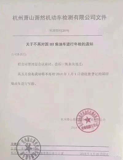 年初有消息稱,從5月起,杭州蕭山蕭然機動車檢測站將不再對2014年1月1日前注冊登記的國三柴油車進行年檢!