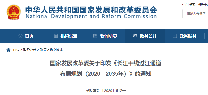 ??《長(zhǎng)江干線過江通道布局規(guī)劃(2020—2035年)》(以下簡(jiǎn)稱《規(guī)劃》)業(yè)經(jīng)國(guó)務(wù)院批準(zhǔn),現(xiàn)印發(fā)給你們,請(qǐng)按照?qǐng)?zhí)行,并就有關(guān)事項(xiàng)通知如下: