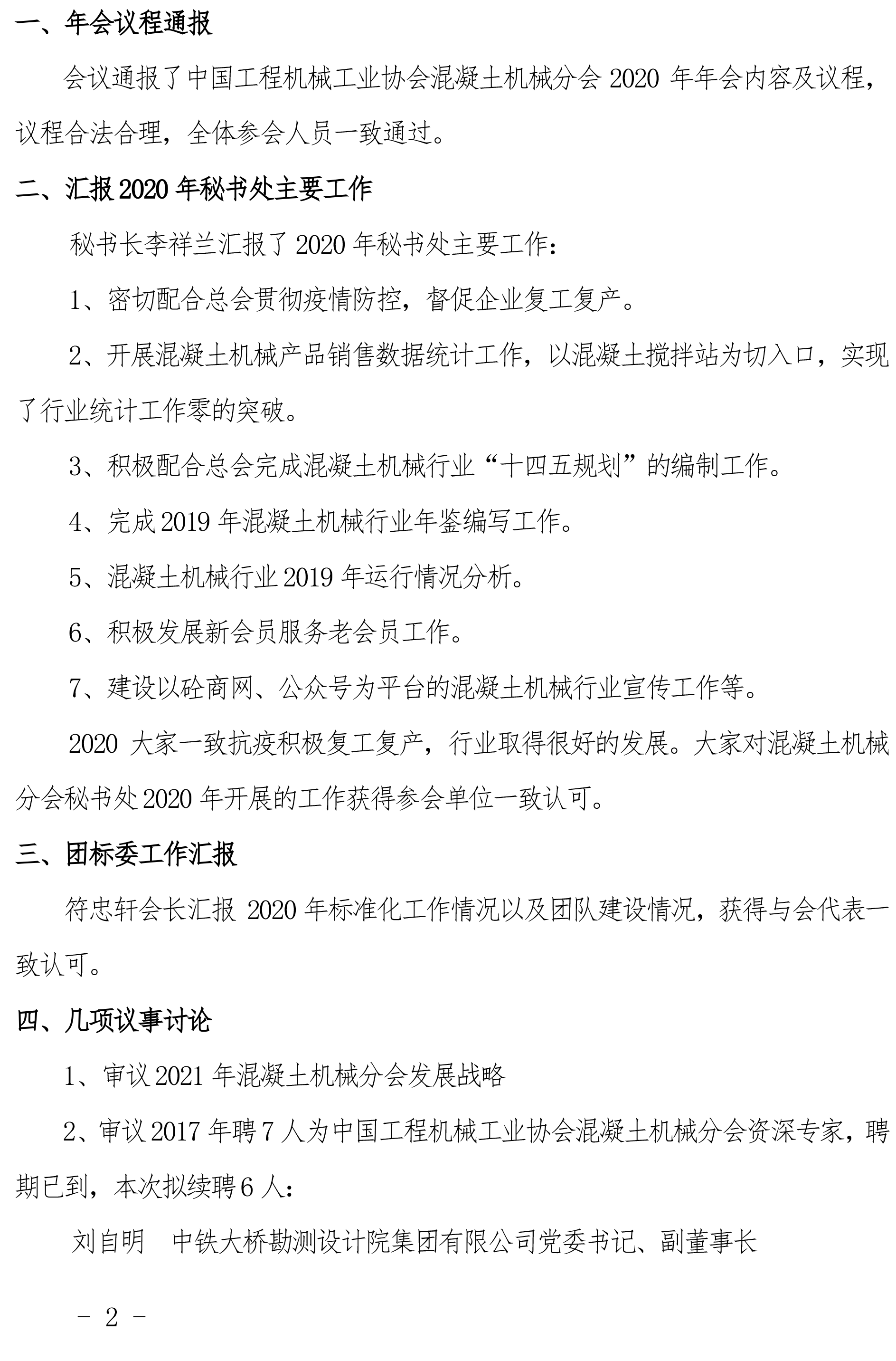 中國工程機械工業(yè)協(xié)會混凝土機械分會 2020 年理事會議紀要