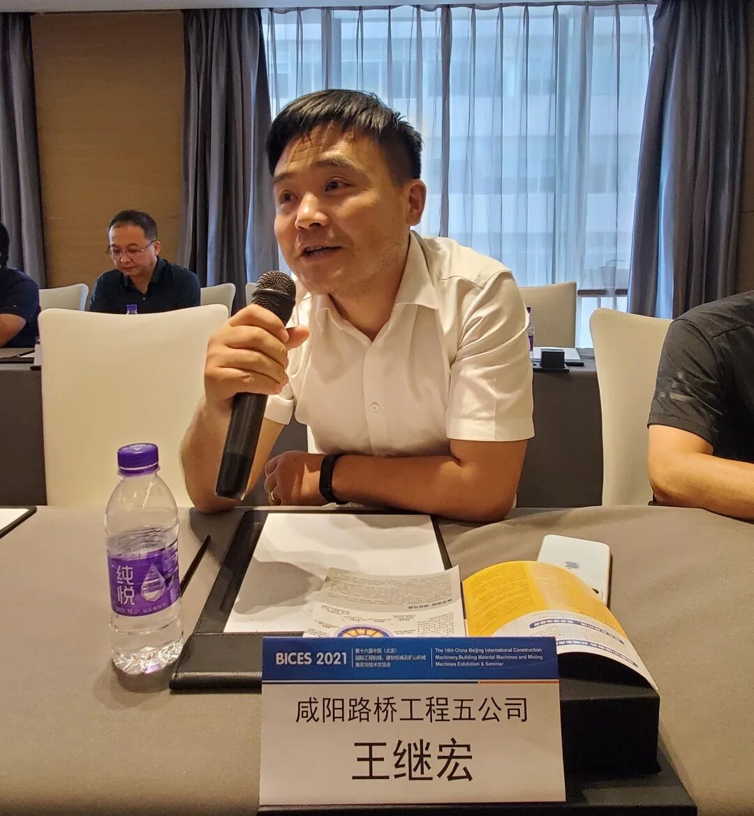 陜西省咸陽路橋工程公司五公司總經(jīng)理王繼宏在座談交流中發(fā)言