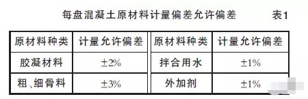 《混凝土質(zhì)量控制標(biāo)準》(GB50164-2011)第6.3.2條每盤混凝土原材料計量的允許偏差應(yīng)符合表1的規(guī)定,原材料計量偏差應(yīng)每班檢查1次。