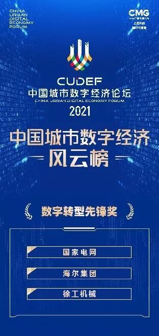 論壇上,《中國城市數(shù)字經(jīng)濟(jì)風(fēng)云榜》榮耀發(fā)布。榜單包括“城市數(shù)字經(jīng)濟(jì)競爭力綜合排名”,同時(shí)多項(xiàng)重磅獎(jiǎng)項(xiàng)發(fā)布,“數(shù)字賦能先鋒獎(jiǎng)”“數(shù)字轉(zhuǎn)型先鋒獎(jiǎng)”“數(shù)字應(yīng)用方案獎(jiǎng)”。徐工機(jī)械與國家電網(wǎng)、海爾集團(tuán)同時(shí)榮獲“數(shù)字轉(zhuǎn)型先鋒獎(jiǎng)”,成為唯一入選的工程機(jī)械制造企業(yè)。