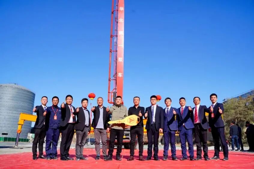 “華北最長(zhǎng)臂架泵車”完美交付現(xiàn)場(chǎng)