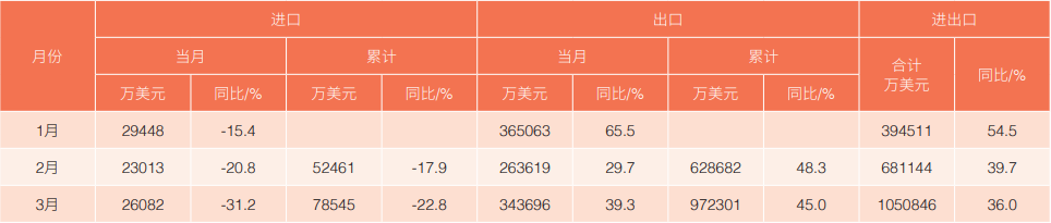 表1 2022年1-3月各月進(jìn)出口情況