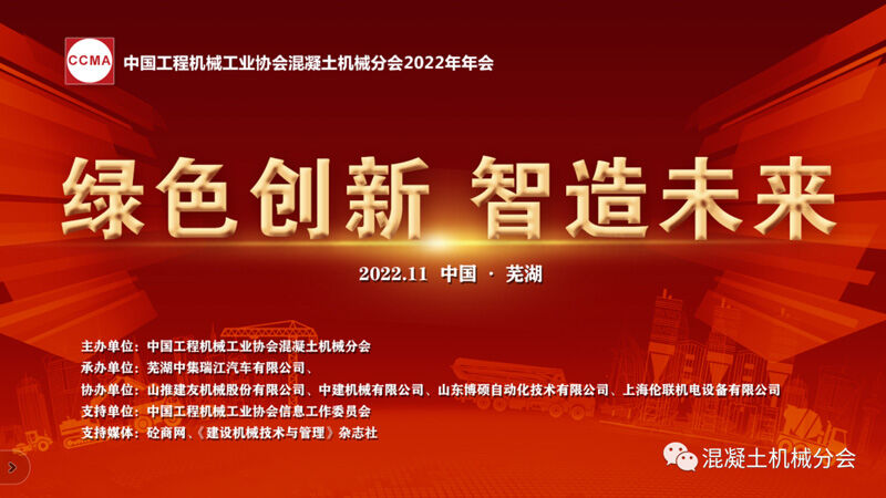 2022年11月17日至19日,以“綠色創(chuàng)新 智造未來”為主題的中國工程機械工業(yè)協會混凝土機械分會2022年年會在安徽蕪湖隆重舉行。
