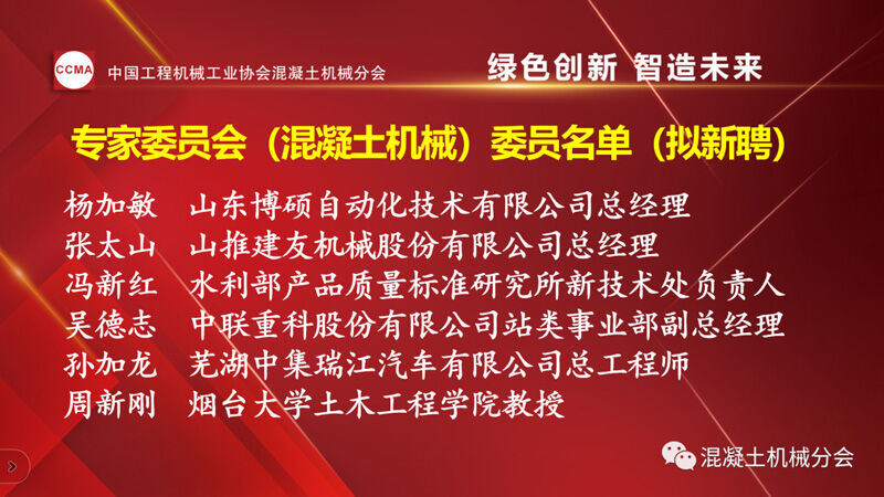 中國工程機械工業(yè)協會混凝土機械分會會長符忠軒宣讀兩份通知。一份為《關于2022年中國工程機械工業(yè)協會專家委員會(混凝土機械)委員聘任的通知》,其中中國工程機械工業(yè)協會專家(混凝土機械)委員會(混凝土機械)續(xù)聘7位,新聘6位委員,共13位。