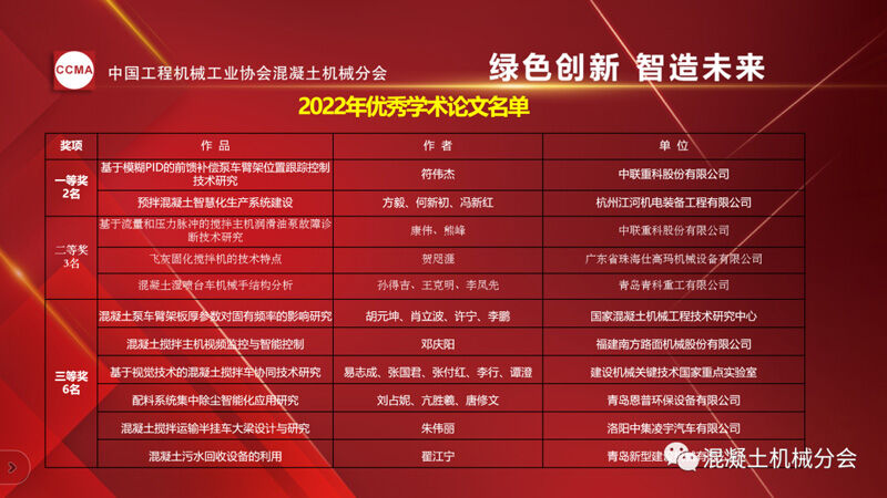 中國工程機械工業(yè)協會混凝土機械分會副秘書長龍衛(wèi)平先生宣讀《關于發(fā)布2022年混凝土機械優(yōu)秀論文獲獎名單的通知》。