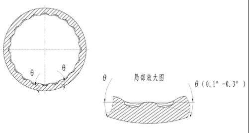 在內(nèi)孔加工過(guò)程中,油穴與內(nèi)壁交接處自然形成0.10~0.30的楔形角,不僅提高了布油效率,而且兩排油穴之間的部分形成類似滾珠的弧形面,使軸套內(nèi)壁具有了滾動(dòng)軸承的特點(diǎn)。