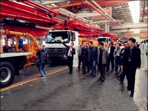 25日上午,考察團全體成員在三一重工一號會議室召開了2014年度山東省混凝土協(xié)會會長工作會議,三一重工泵送營銷公司副總經(jīng)理王暾先生致歡迎詞,會議對2014年全年工作進行部署、攪拌站評優(yōu)等問題展開討論。12點40分,考察團參觀了三一產(chǎn)業(yè)園,一進廠區(qū),一排排鮮紅锃亮的混凝土泵車像是巨人般列隊歡迎,亞洲最大的花園式18號廠房、一塵不染的總裝車間、豐富多彩的企業(yè)文化、振奮人心的發(fā)展前景,讓考察團領導班子頻頻點贊,感嘆三一不愧為世界級工程機械制造商,充分肯定了三一重工在混凝土行業(yè)中的龍頭地位。參觀后,考察團集體合影留念。