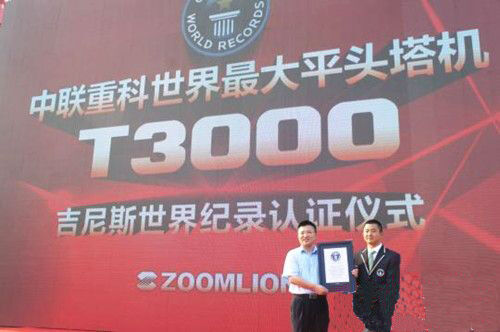 在交付儀式現(xiàn)場,英國吉尼斯世界紀(jì)錄認(rèn)證官陳東先生鄭重宣布,T3000是全球最大的平頭塔機(jī),由中國的中聯(lián)重科制造,再次創(chuàng)造了全球起重機(jī)械的又一個(gè)“世界之最”?!霸擁?xiàng)記錄的誕生標(biāo)志著中聯(lián)重科塔機(jī)技術(shù)站在了世界塔機(jī)設(shè)計(jì)和制造領(lǐng)域的最前沿,充分彰顯了中聯(lián)重科在全球起重機(jī)行業(yè)的領(lǐng)先地位和主導(dǎo)作用”,國家建筑城建機(jī)械質(zhì)量監(jiān)督檢驗(yàn)中心主任曾舜安表示。