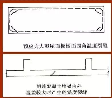 多在大體積混凝土或高強混凝土施工過程中產生:由于混凝土水化熱很高,混凝土內部溫度與表面溫度以及外部環(huán)境溫度相差較大,加之有約束的存在,進而產生水化熱裂縫。