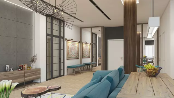 由于這間公寓的采光非常良好,大量使用工業(yè)風(fēng)元素,像是水泥粉光地板、裸露天花管線、不銹鋼廚房臺(tái)面,也不會(huì)感到冰冷,反而在木地板、木作家具的襯托下,搭配原木百葉透進(jìn)的光線,呈現(xiàn)原始質(zhì)樸的感覺(jué)。