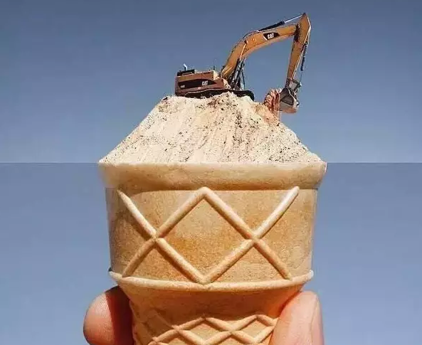 用挖掘機挖雪糕,過癮!