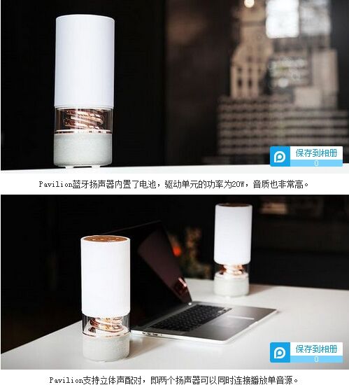 牙3.0和aptX編碼,能夠帶來(lái)CD般的音質(zhì)表現(xiàn)。除了單獨(dú)使用之外,你也可以用兩個(gè)Pavilion組成立體聲來(lái)播放同一個(gè)音源。