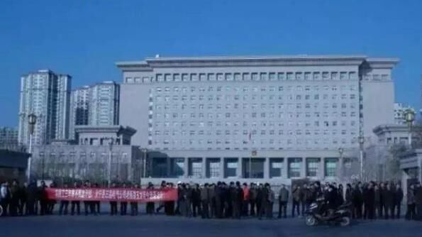 寧夏自治區(qū)人民政府門(mén)外的討薪人群。