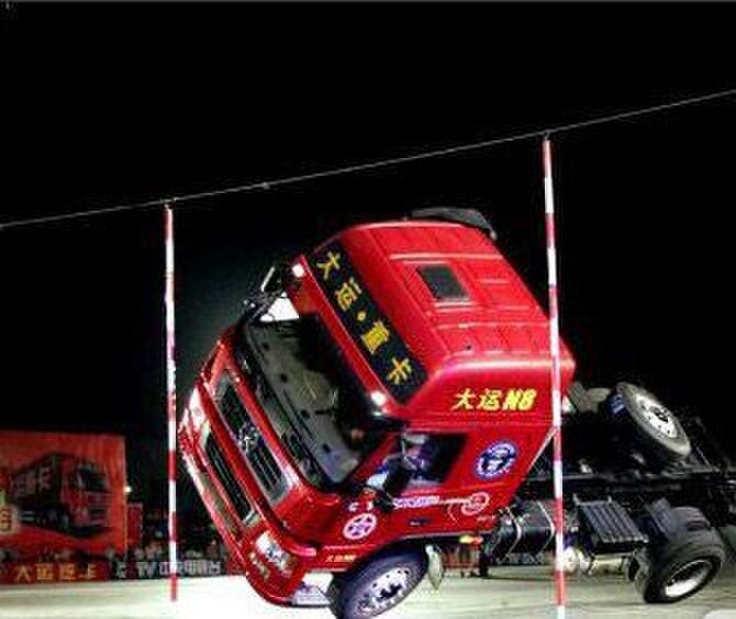 在2013年2月11日,特技車手張華曾駕駛大運重卡挑戰(zhàn)“卡車漂移入位最短距離”的吉尼斯世界紀錄,并以90cm的距離成功創(chuàng)造了新紀錄。