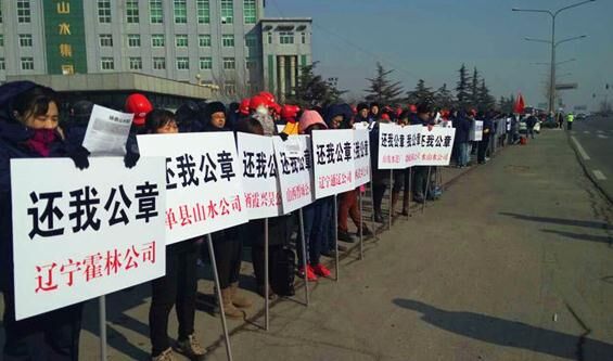 對(duì)于此次九省職工齊聚濟(jì)南總部討要公章一事,山東山水新總部一名負(fù)責(zé)人告訴記者,“這也是無奈之舉,企業(yè)要生產(chǎn),員工要生存,我們真的拖不起了?!?/span>