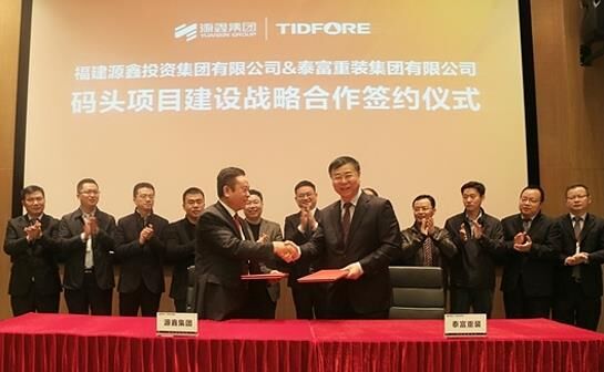 泰富重裝集團與福建源鑫投資集團在泰富湖南九華工業(yè)園簽署了碼頭項目建設(shè)戰(zhàn)略合作協(xié)議。泰富重裝集團董事長張勇、源鑫投資集團董事長陳必松分別代表雙方簽字,雙方企業(yè)高管、源鑫學院學員代表等百余位成員共同見證了這一重要時刻。