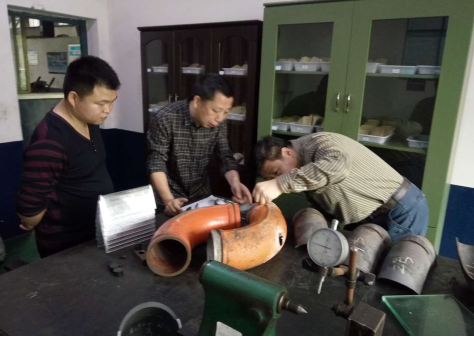 (符會長現場分析彎管磨損情況)