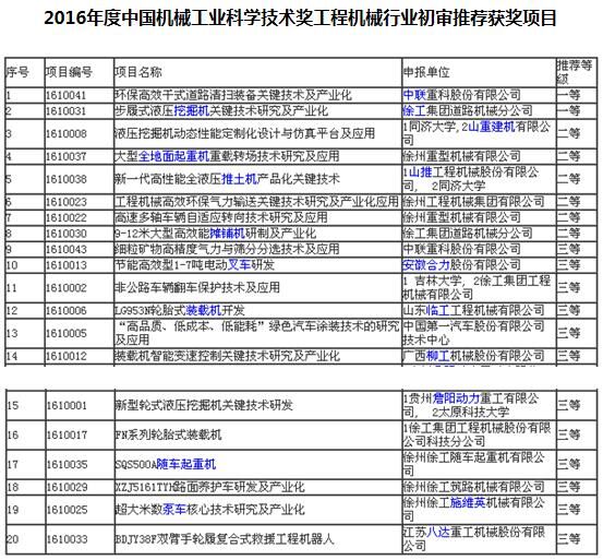 本年度共有20家行業(yè)企業(yè)獨(dú)立或與相關(guān)高校聯(lián)合報(bào)送了43項(xiàng)評(píng)審項(xiàng)目,涉及起重機(jī)械、掘進(jìn)機(jī)械、環(huán)衛(wèi)機(jī)械、土方機(jī)械、路面機(jī)械、混凝土及制品機(jī)械、搶險(xiǎn)救援機(jī)械、工業(yè)車輛、配套件等多類產(chǎn)品及關(guān)鍵技術(shù)的應(yīng)用和產(chǎn)業(yè)化,申報(bào)項(xiàng)目呈現(xiàn)出創(chuàng)新點(diǎn)多、技術(shù)含量高、社會(huì)效益和經(jīng)濟(jì)效益顯著等特點(diǎn)。