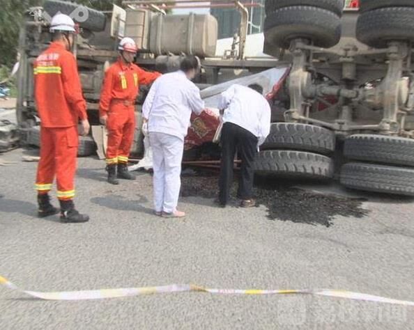 據(jù)現(xiàn)場的目擊者王女士說:“當(dāng)時(shí)我在這個(gè)路口等紅燈,騎電瓶車的男子從我對(duì)面過來闖紅燈直接往前走,沒想到右側(cè)這輛攪拌車也開了過來,隨著刺耳的剎車聲,攪拌車直接將騎電瓶車的男子撞到,騎電瓶車的男子摔坐在地上,由于攪拌車的慣性,車子隨后側(cè)翻過來,正好將摔坐在地上的男子壓在下面,造成男子當(dāng)場死亡,嚇得我都沒敢看。“