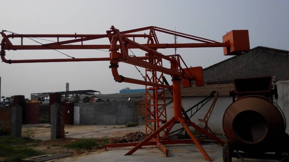 河南金源布料機桿采用回轉,臂架式布料結構,配用125MM輸送管,360度回轉,整機手動操作。具有結構簡單,強度、剛性可靠,操作簡單,靈活,維修方便等特點,與混凝土泵配套使用可廣泛的應用于民用與工業(yè)建筑的混凝土澆注工程中