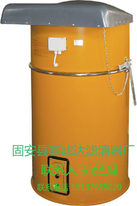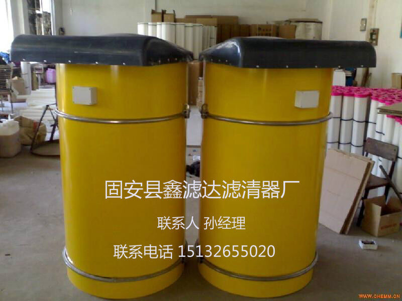 水泥倉頂除塵器結(jié)構(gòu)簡介,是一種圓形可拆的金屬濾筒,底板上有14個(gè)嵌入圓形孔,它設(shè)有14個(gè)濾芯,扎緊在上端1個(gè)振動(dòng)器的吊架上,定時(shí)震動(dòng),使濾芯阻留下來的灰塵降落在倉內(nèi)。