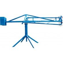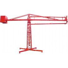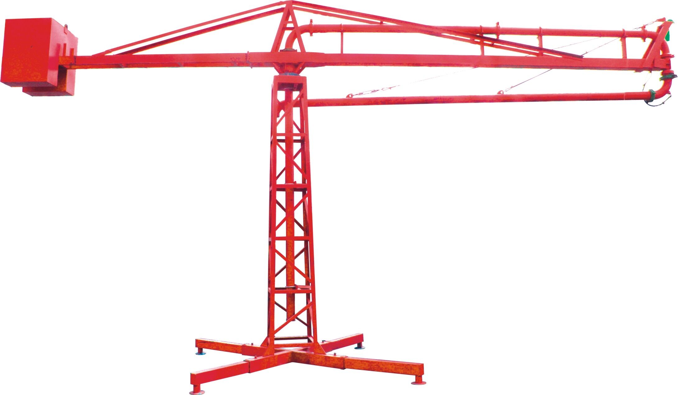 結構:、插銷、立架、構成的底座是固定部分,其上通過回轉支承與上部回轉部分相連,上主梁架、平衡臂、平衡臂架拉桿、上橫桿組成后回轉部分。立管上有回轉卡篐接頭。通過人力拉動,可使整個回轉部分回轉360度。上梁主架前端連接有一個回轉支座與前橫桿、前拉桿組成前回轉部分,在人力拉動下可繞回轉支座旋轉300度。由兩部分回轉架組成的合成運動就能覆蓋所有布料半徑范圍的布料點。