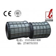 懸置在機架上的輥軸穿過管模,在電機驅(qū)動下,傳動軸帶動輥軸以規(guī)定速度旋轉(zhuǎn)。在輥軸與管模兩端擋圈摩擦力作用下,管模與輥軸作同方向旋轉(zhuǎn)。此時,由人工或機械投入的混凝土拌合物在旋轉(zhuǎn)離心力作用下鋪在管模內(nèi)壁,當混凝土拌合物料層厚度超過擋圈高度后,即開始受到輥軸與管模內(nèi)擠壓。隨著料層厚度的增加,輥軸對混凝土的壓力越大,并逐漸使混凝土拌合物達到預(yù)期的密實度。在輥壓成型過程中,混凝土拌合物除受到輥壓力作用外,還同時受到管模旋轉(zhuǎn)造成的離心力和管模由于投料均勻性影響而形成的自身振動力的作用。輥壓成形原理即是通過上述工藝過程和三種力的組合作用(其中主要是輥壓力),使混凝土拌合物密實而形成管模