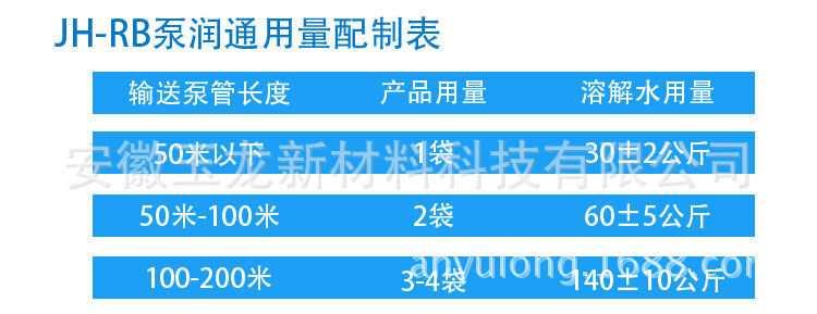 JH-RB泵潤通用量配制表