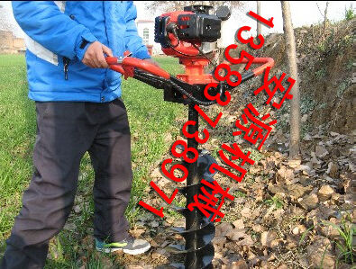 地鉆由小型通用汽油機,齒輪箱及特殊設(shè)計的鉆具組成.適合在土地,凍土,冰層上打孔.廣泛用于園林,種植,植樹,物探,道路建設(shè)等領(lǐng)域  2.鉆頭采用錳鋼合成更加的堅硬。對硬土質(zhì),超硬土質(zhì),粘土,凍土等都能工作。   3.地鉆可根據(jù)樹種,選配多種規(guī)格的鉆頭,以滿足用戶需要。 4.地鉆能夠讓人們從繁重的體力勞動解放出來,廣泛應用于植樹造林,栽種果林、籬笆、及秋季給果樹施肥等。適合各種地形,效率高,便于攜帶及野外田地作業(yè)。   5.地鉆既可以單人操作,又可雙人操作,經(jīng)濟實用。   注意事項:1.使用正品2T(二沖程)FC級機油,嚴禁使用4T(四沖程)機油。   2.嚴禁使用純汽油。   3.嚴格按251的比例兌油. 4.新機器不可高速使用,請低速磨合3小時。   5.嚴禁在高速的時候突然關(guān)停發(fā)動機,否則會使下次開機啟動困難。   6.感覺機器震動異常,請立即停機檢查,是否破損,松動,偏心。   7.嚴禁在有亂石堆的草地上使用。   8.鉆頭有嚴格的尺寸限制,嚴禁私自改裝或使用增大號鉆頭. 9.每工作一段時間清除火花塞、消音器積碳,清洗空氣濾清器,向齒輪箱加注黃油。   10.遇到問題自己無法解決的,不要私自拆裝。   11.機器長時間不用時,應該將剩余的燃油倒出,然后發(fā)動機器將化油器內(nèi)的燃油全部燃燒干凈。   12.想讓機器運轉(zhuǎn)更穩(wěn)定,壽命更長請經(jīng)常保養(yǎng)。   安全事項:   A.人身安全:嚴禁在室內(nèi)添加汽油,嚴防火災;機器運行時,嚴禁手腳靠近鉆頭;清理或檢查機器時必須停機。   B.機器安全:地鉆起動前必須清理草坪上的雜物,確保機器安全運轉(zhuǎn)。