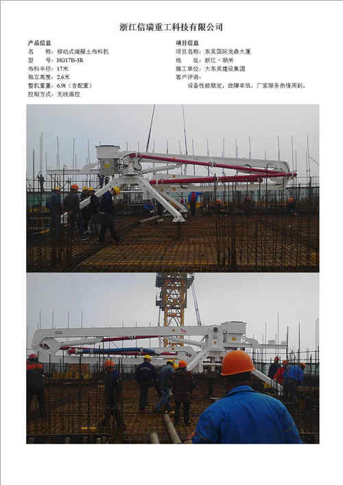 歸屬行業(yè):信瑞重工HG24A-3R樓面內(nèi)爬混凝土布料機(jī)