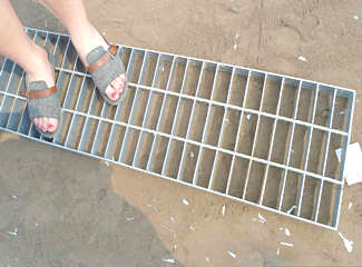 1T1踏步板:由負載扁鋼和橫桿按一定間距經(jīng)緯排列,一般鋼格板焊接固定。